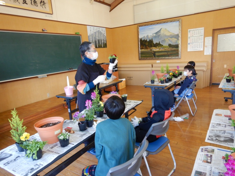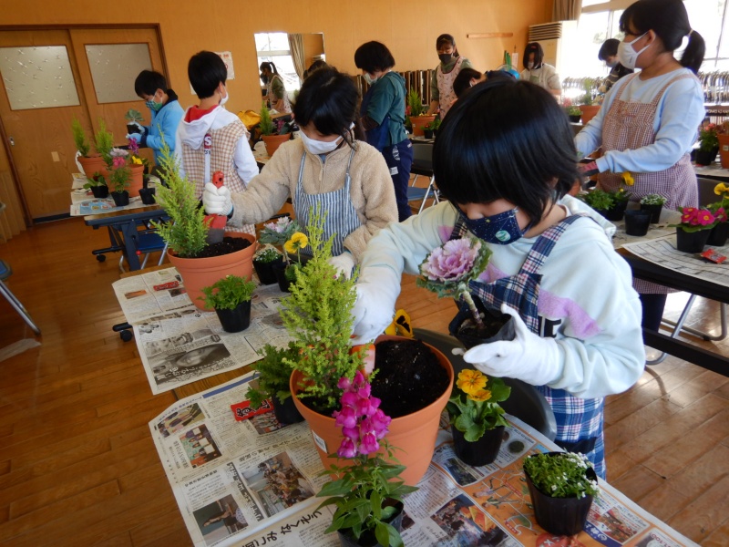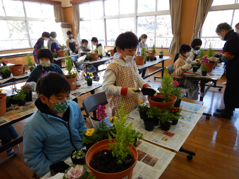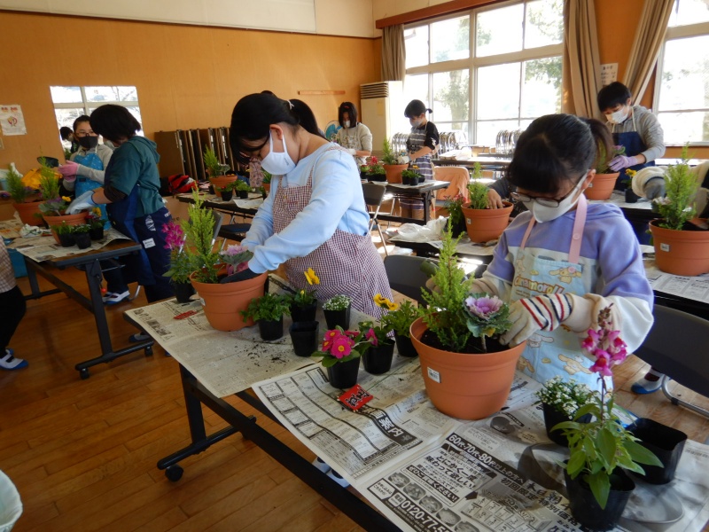 例年、12月は餅つきですが、今年は「寄せ植え体験」に変更しました。