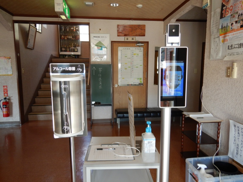 検温器は現在、夜間・休日は盗難防止のため事務室に収納してますが、近日中に固定化して、常時使えるようにする予定です。