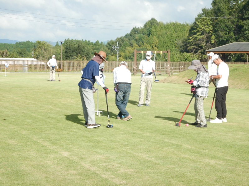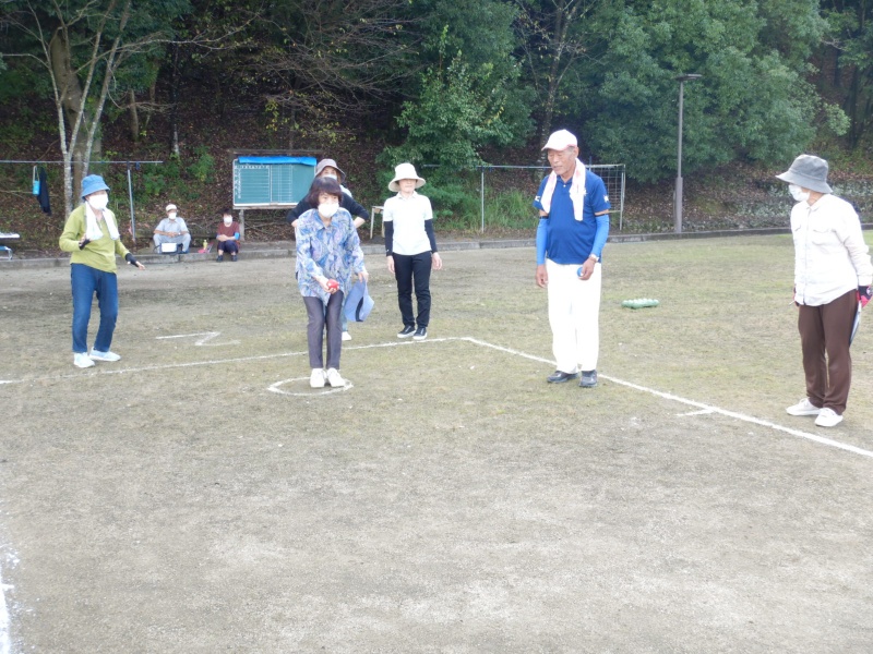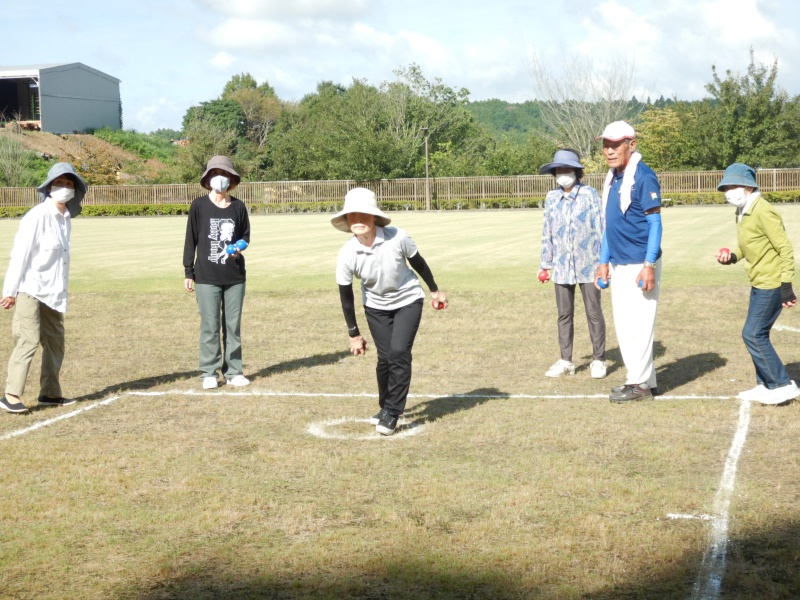 晴天の“秋空”というよりも、残暑を思わせる暑い日となりましたが、応援者も含めて総勢約80名近い高齢者の皆さんが参加。グラウンドゴルフとペタンクの二種目で各町内対抗戦として行いました。