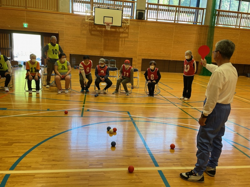 初めての人でも楽しくできるボッチャを、障がい者の方と東有田地区住民の方との交流活動として実施しました。