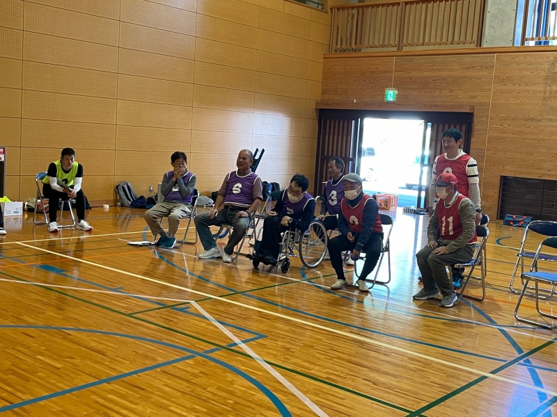 ルール説明後、試合開始。プレイヤーも審判も初体験の方が多く、最初は戸惑いや混乱もありましたが、ルールが簡単なのですぐに楽しめることができました。チームではお互いに助け合いながら、勝っても負けても歓声が響く楽しい雰囲気の中、好勝負が続きました。