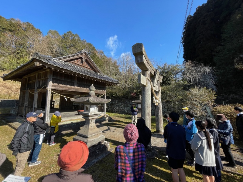 諸留町には歴史的に貴重な神社仏閣や史跡などが点在しています。今回は東有田公民館元館長の松尾俊明さんに説明をしていただき、歩きながら歴史を感じていただくことにしました。