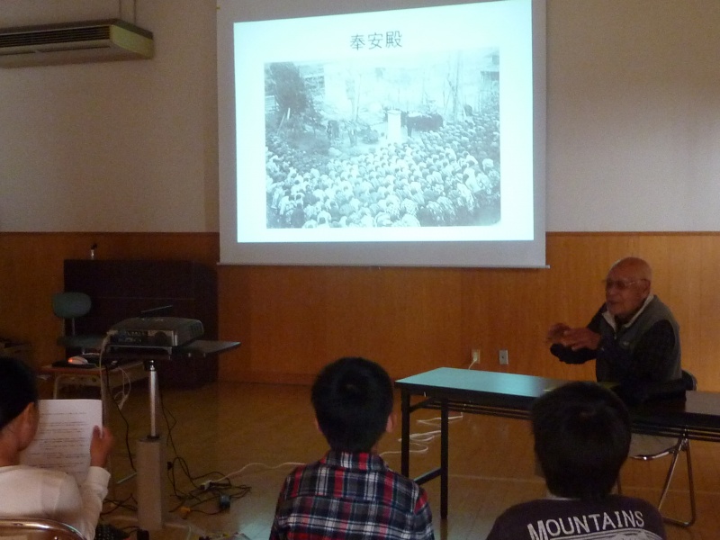 講師に堀田町自治会長の石松博さんをお迎えして、「平和について」