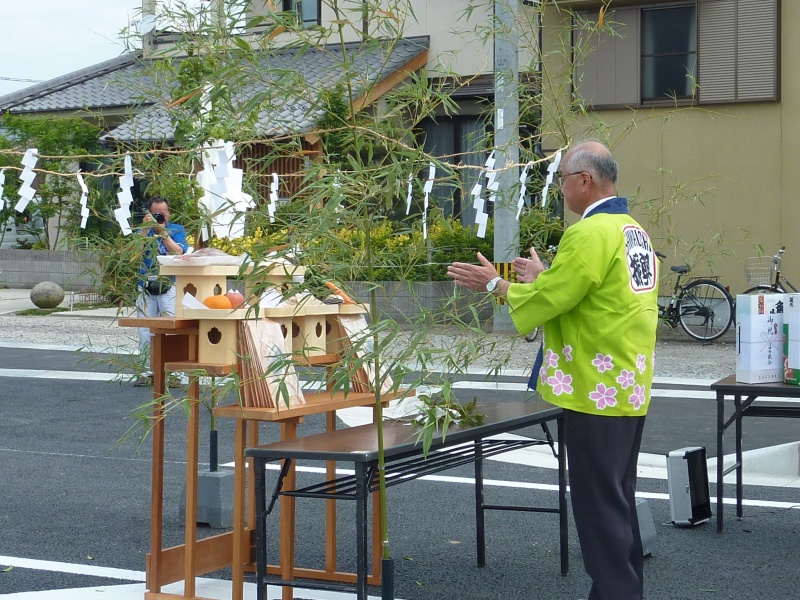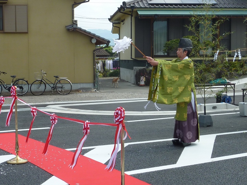 まずは、多数の来賓の方々、校区自治会長、工事関係者の方々などが出席し神事が