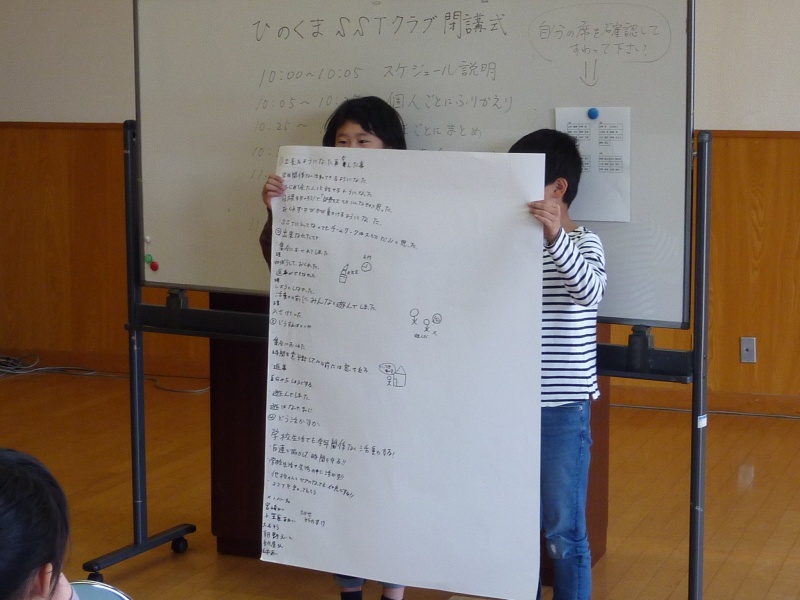 その後、グループごとにみんなの意見をまとめて、模造紙に書き出して