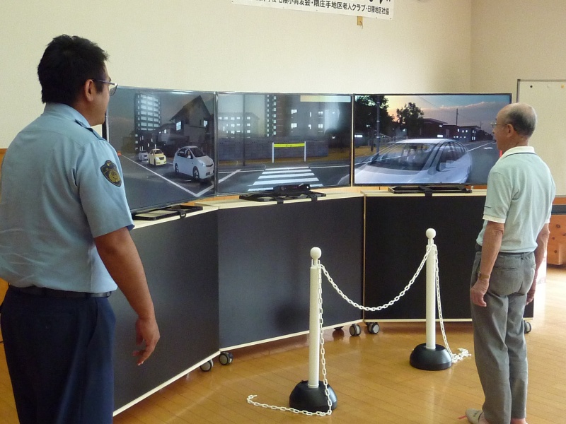 その後、最新式のシュミレーターを使って、横断歩道、または横断歩道がない道路の