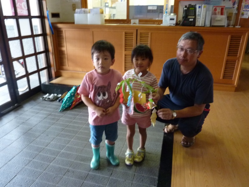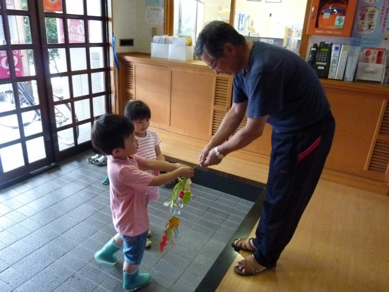 今日、公民館にひのくま子ども園の園児が、かわいい七夕飾りを持ってきてくれました。