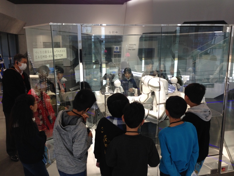 こちらでは、様々な産業用ロボットが作られていました。人の代わりに溶接をしたり、
