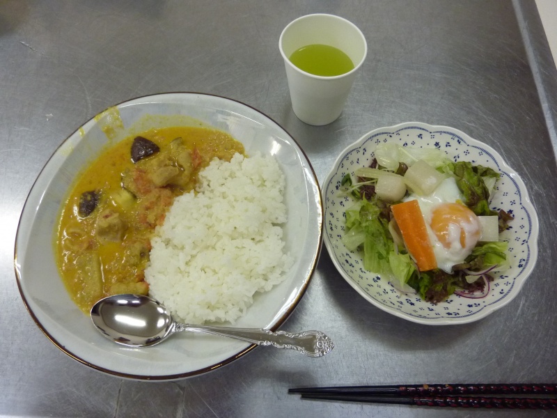 完成したカレーとピクルスの野菜サラダは皆さんで美味しく頂きました。