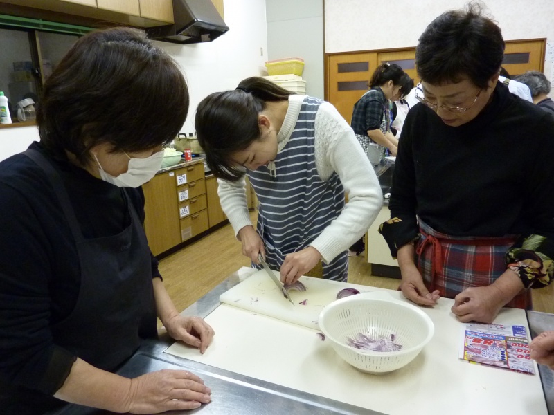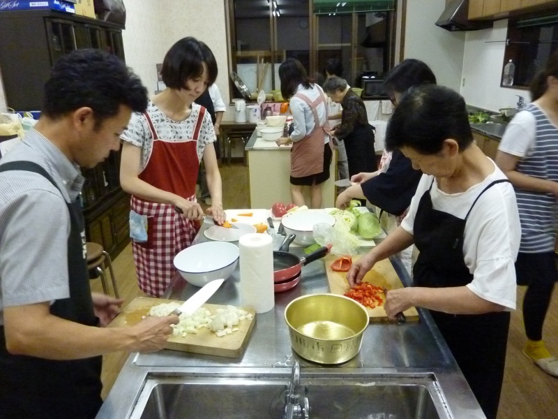 時には年配の方が20~30代の参加者の方に食材の切り方などをやさしく教える姿なども