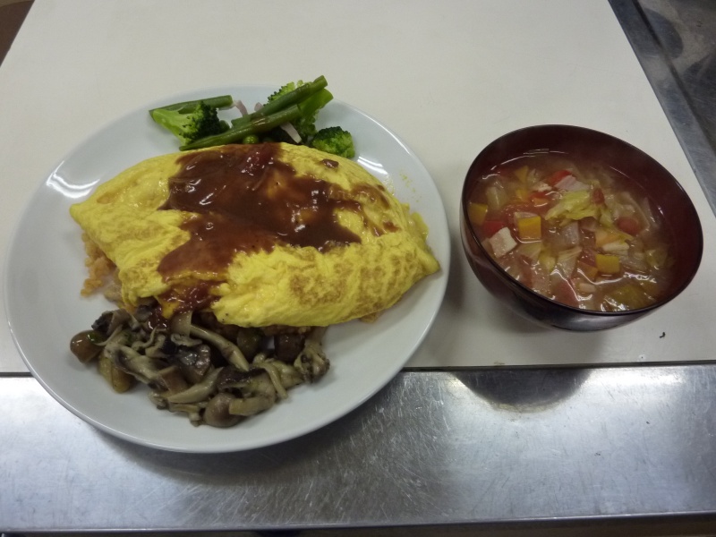 定番のメニューですが、付け合わせなども工夫してひと味違うオムライスとなりました。