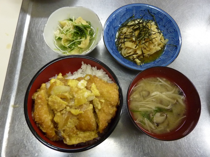 今回は「割合で作る和食」をテーマにかつ丼、味噌汁、うす揚げと水菜の煮浸し、
