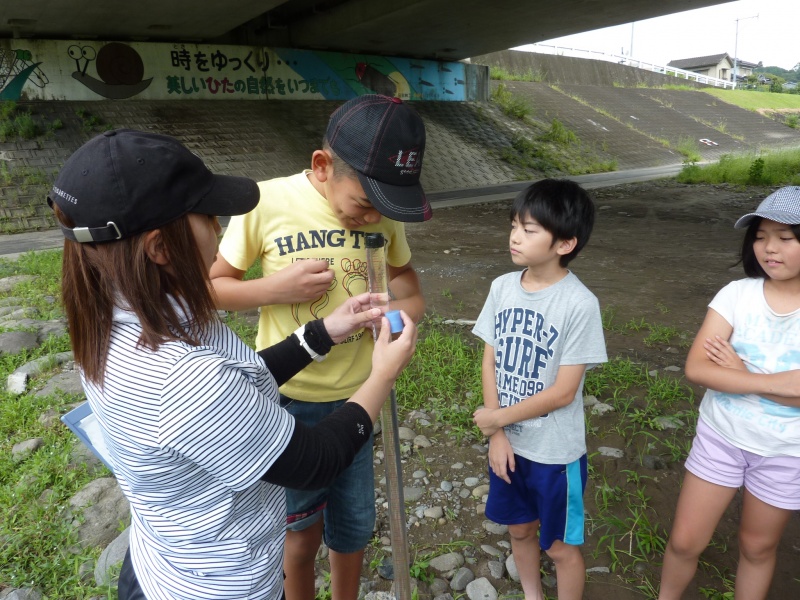 その後、水の汚れや透視度を調べ、今回の調査では三隈川は「きれいな川」であることが