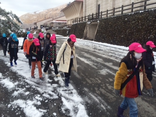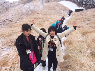 雪が凍って足元が滑る中、みんな元気に無事、登頂しました。iPhoneから送信