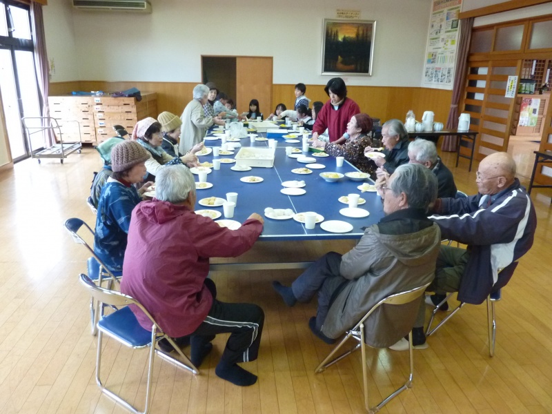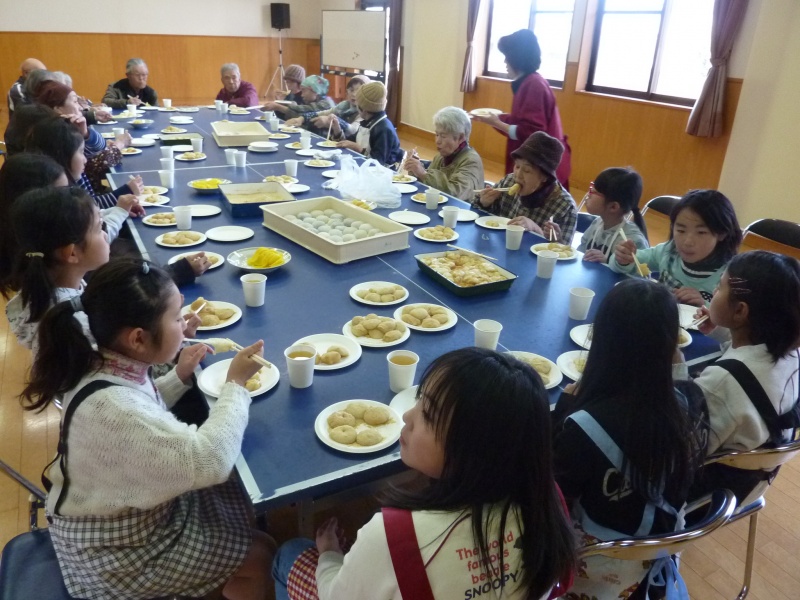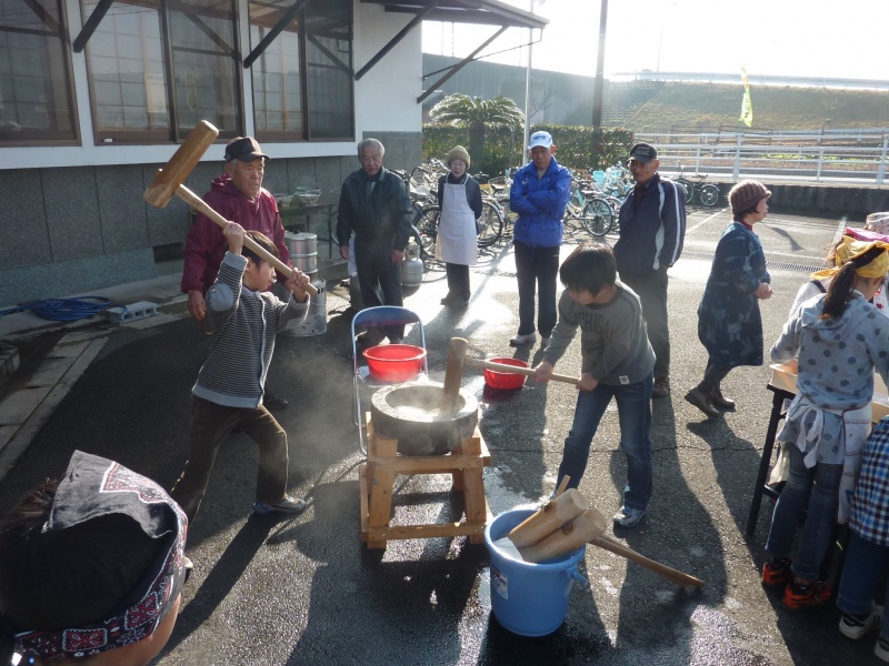 12月26日(水曜日)日隈公民館高齢者セミナー「ながいき塾」参加者とひのくまSST倶楽部参加児童の交流「もちつき大会」を開催しました。