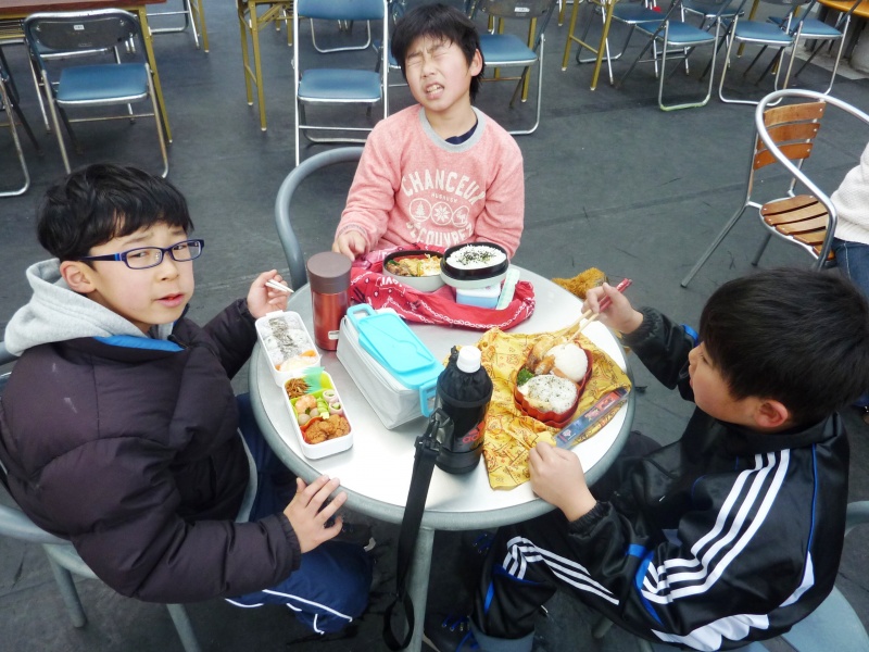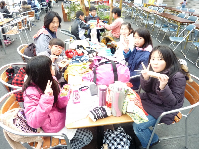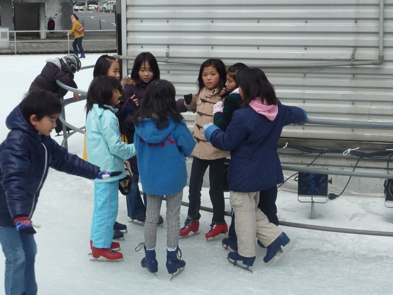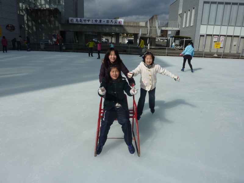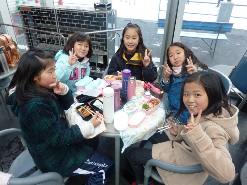ほとんどの子ども達が初めてで、何度もしりもちをつきながら、手すりに掴まりながら、恐る恐る滑っていましたが、美味しいお弁当を食べてからは、元気が出たのか? 氷の上に慣れたのか? しりもちをつく子も少なくなり、鬼ごっこをしながら滑っていました。