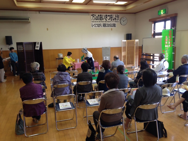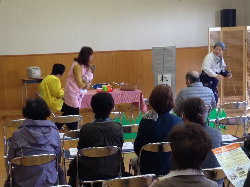 今回は、「認知症啓発・予防寸劇と脳のトレーニング」~いきいきと生きるために~と題し、劇団「あやめ」の皆さんによる寸劇と、認知症予防のお話を三花すずめの学校校長平川ちか子さんに起こしただきました。