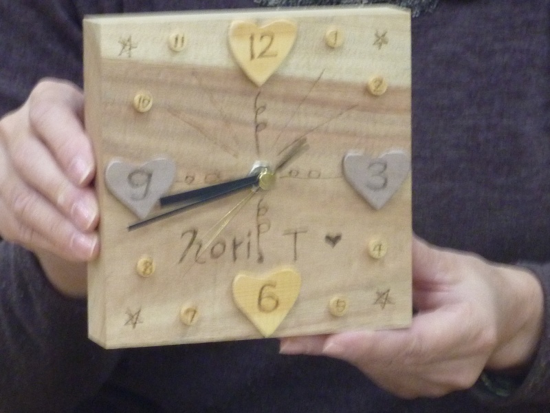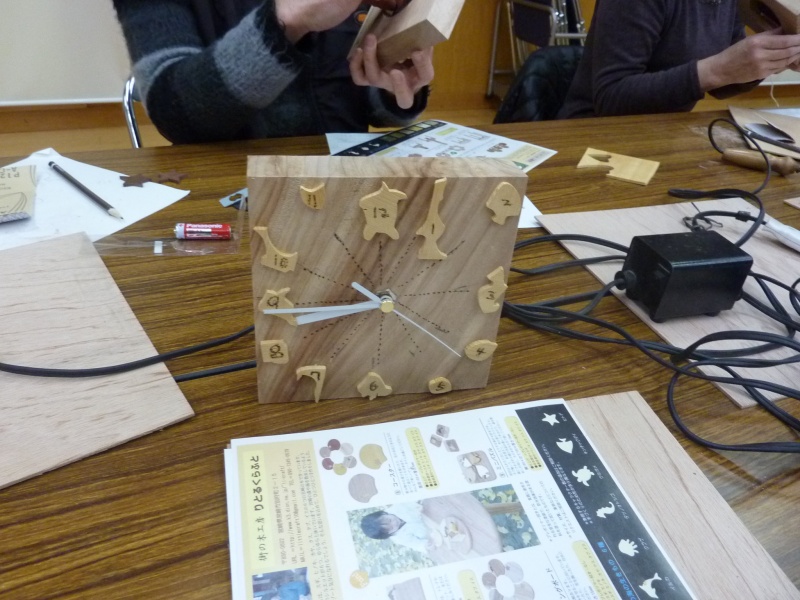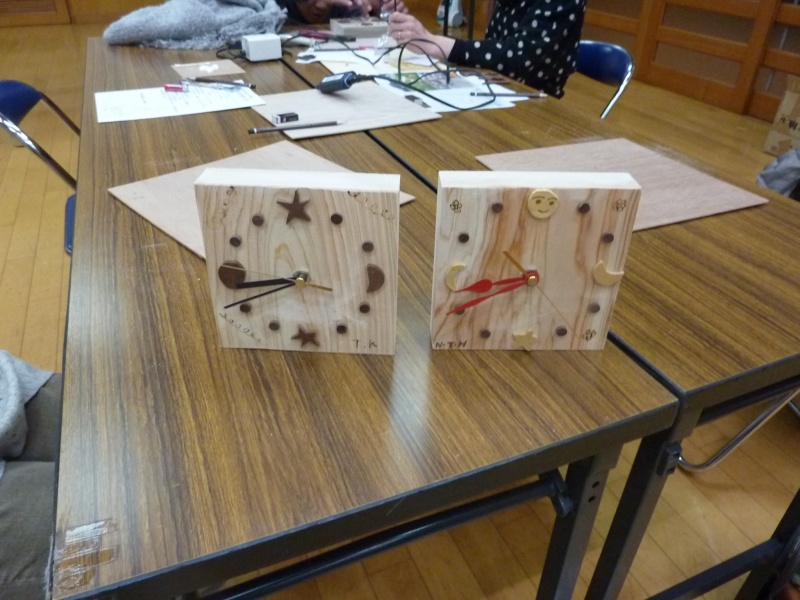 できた、置時計に電池を入れて秒針が動き出したら、世界で一つしかない自分だけの時計に皆さん大満足