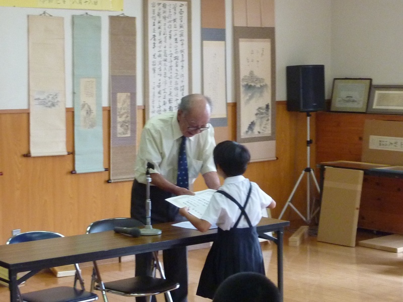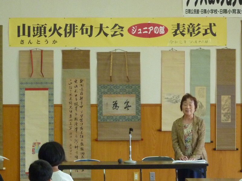 入賞した作品は、いずれも身近な季節の風物を題材にして、心を動かされたことを、言葉を選び、見事に表現していました。表彰式では、それぞれの選者が、その賞を受賞した児童に、句のよさを誉め、表彰状を手渡していました。