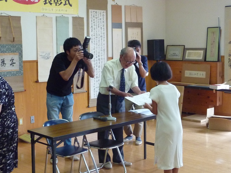 8月18日(日)、中ノ島町にお住まの佐藤重利氏の主催により、日隈小学校1~6年生の入賞した児童の俳句の表彰式が、当館で開催されました。漂泊の俳人・種田山頭火を愛する佐藤氏は、「文化を通して子どもたちに豊かな心を育みたい」という思いから、この俳句大会を開催されてきました。