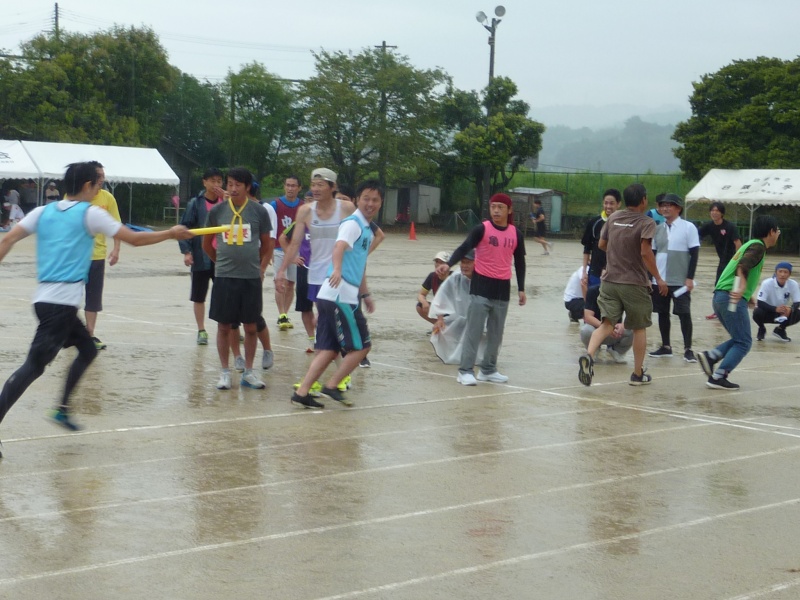 開会式までは曇り空でしたが、競技開始から雨が降り出し、グランドのコンディションはどんどん悪化していきました。しかし、そのような悪条件の中でも、参加者の熱気はめらめらと燃え上がり、むしろ悪条件を楽しむかのように元気いっぱい笑顔で各競技に取組んでいました。