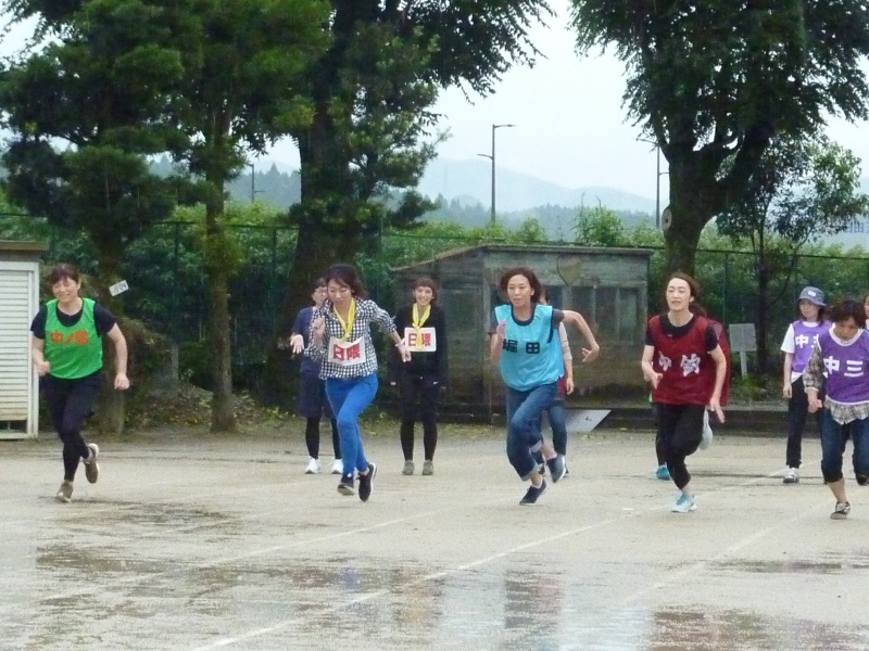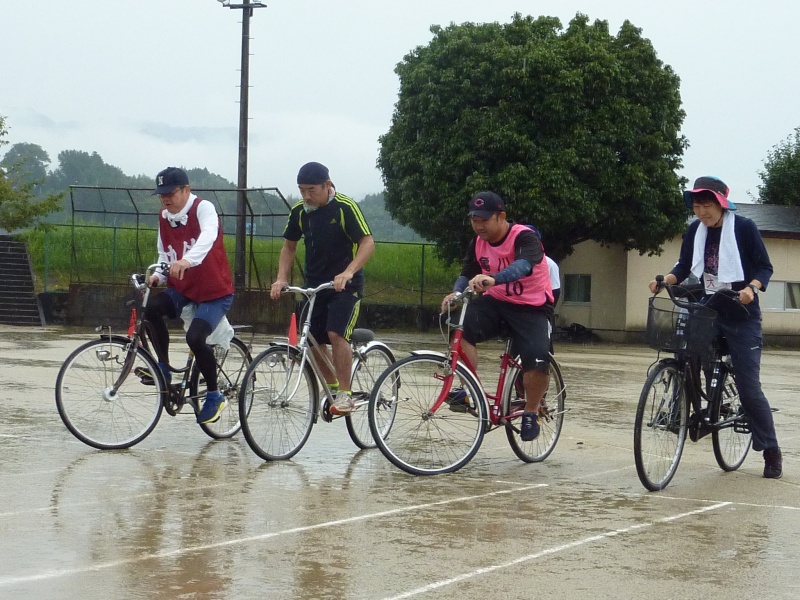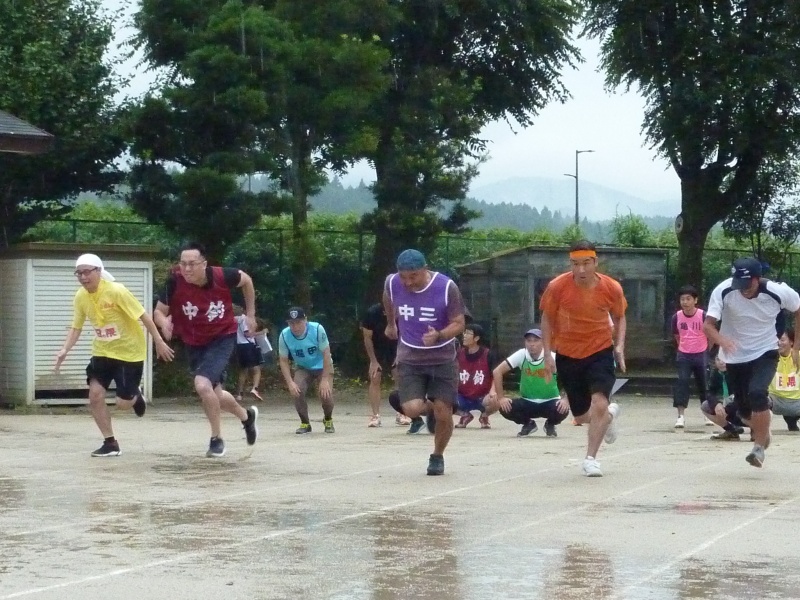 風邪の予防のために小学生と高齢者の競技は中止しましたが、一般男女の競技は、ミニ駅伝、年代別男女の徒競走、自転車遅乗り競争、百足競争を行いました。参加された皆様方は、雨の中で力走したことなど楽しい思い出として残るとともに、町内、そして校区全体の親善が随分と深まった1日だったのではないでしょうか。