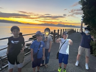 夜の活動はナイトゲーム(肝試し)です。夕焼けのスタートでしたが、今は真っ暗。知らない場所は怖かったようです。