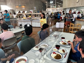 今日の夕ご飯は唐揚げとカレーライスです。ちょっと体調を崩した人もいましたが、みんなそろって食事です!