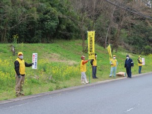 早朝からプラカードやのぼりを立てて、通行する車に呼びかけました。