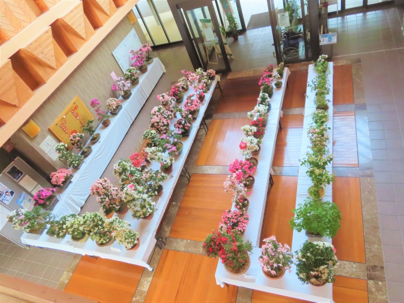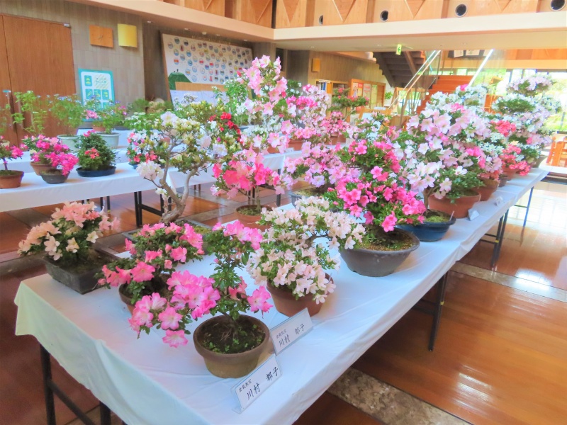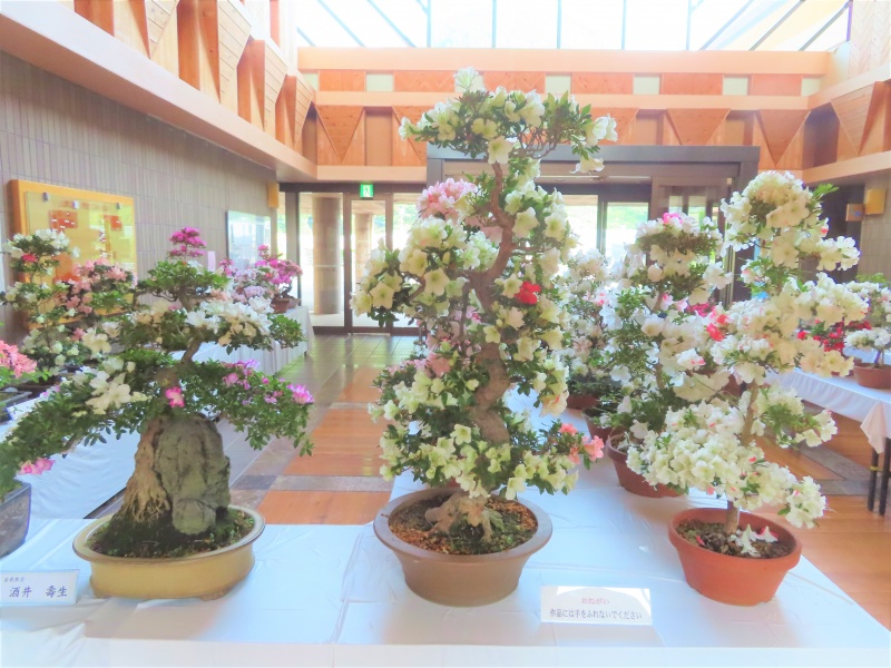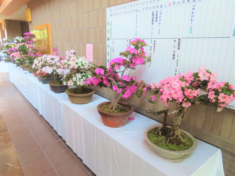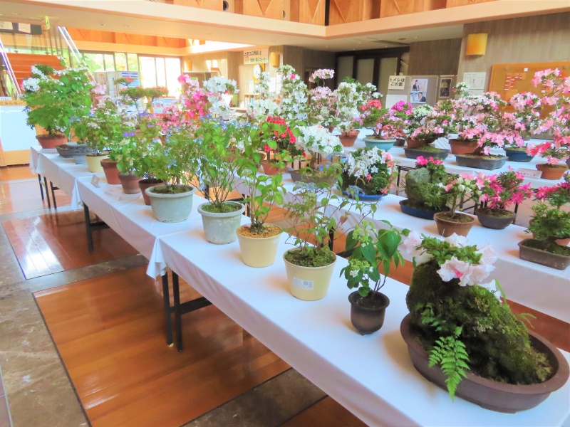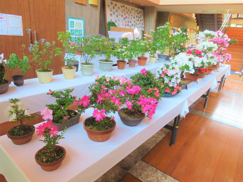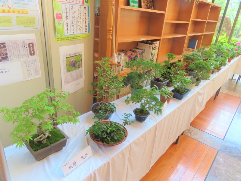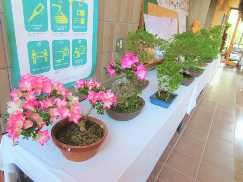 盆栽作品展は、平日の朝8時半から夕方5時まで、上津江振興局ロビーで開催中!