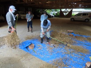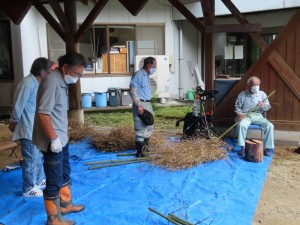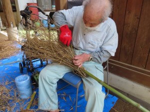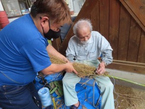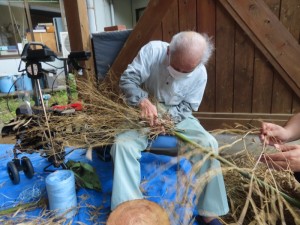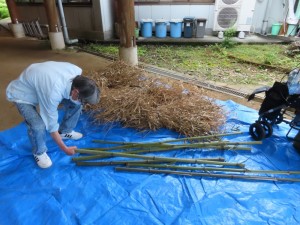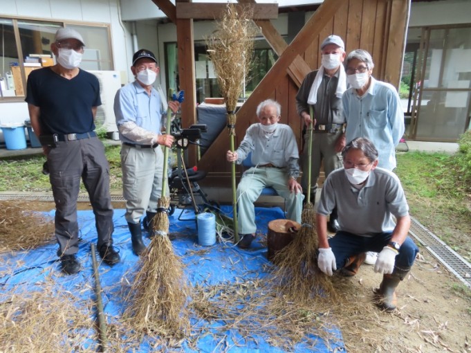 6月23日(木)、やすらぎ苑で森峰美さん(雉谷)の指導により、竹箒づくりが行われました。