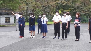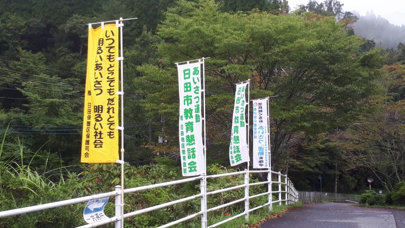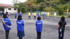 9月13日(火)の朝、津江小中学校で「あいさつ運動」が行われました。(主催:日田市教育懇話会)