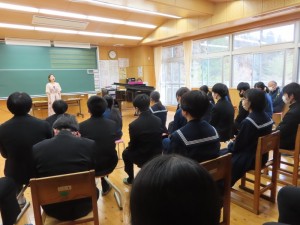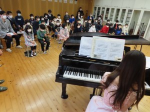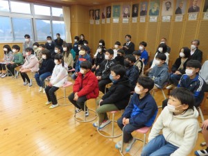 会場は音楽室。中学生と小学生がそれぞれ分かれて鑑賞しました。