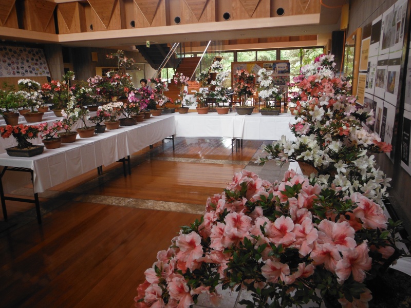毎年恒例の「上津江公民館盆栽教室作品展」を5月29日(月)~6月16日(金)の予定で上津江公民館(振興局)玄関ロビーで開催しています。教室生が丹精込めて育てた華やかなサツキを中心に60鉢を展示しています。