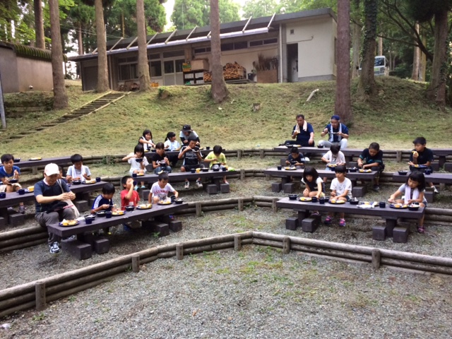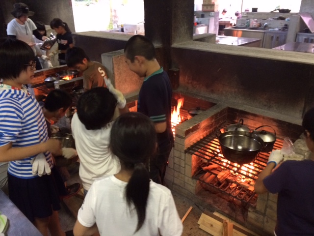 前津江小と津江小のみんなで4班に分かれて美味しいカレーライスができました。