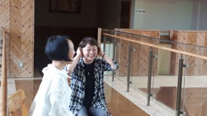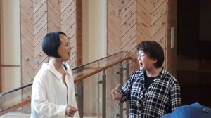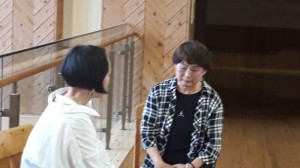 上津江振興局の2階渡り廊下で取材を行ったのですが、話の後に、その場で朝草切り唄を熱唱。川村さんが主旋律を唄い、松田さんが即興でハモります。 すぐ傍で聴いていると、その迫力に圧倒されました。「スゴイ!」感動です!
