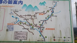 髙畑橋の近くに「しらくさ郷」の案内看板が立てられています。1.6㎞程の散策コースになっていてます。