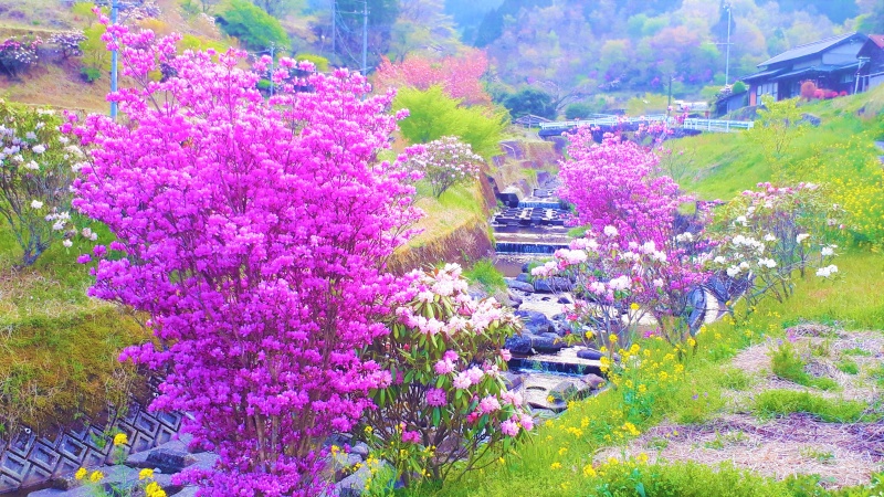4月の後半からしゃくなげがシーズン!しゃくなげロードと言った感じです。これら全て、地域の方々が植えられたんだそうですよ。
