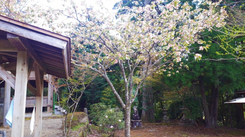 昨年もご紹介した上津江町川原・浦宮神社の黄色い桜の写真を撮りに行きました。(令和2年4月27日)
