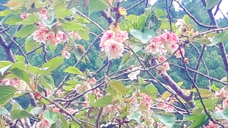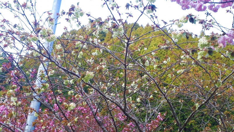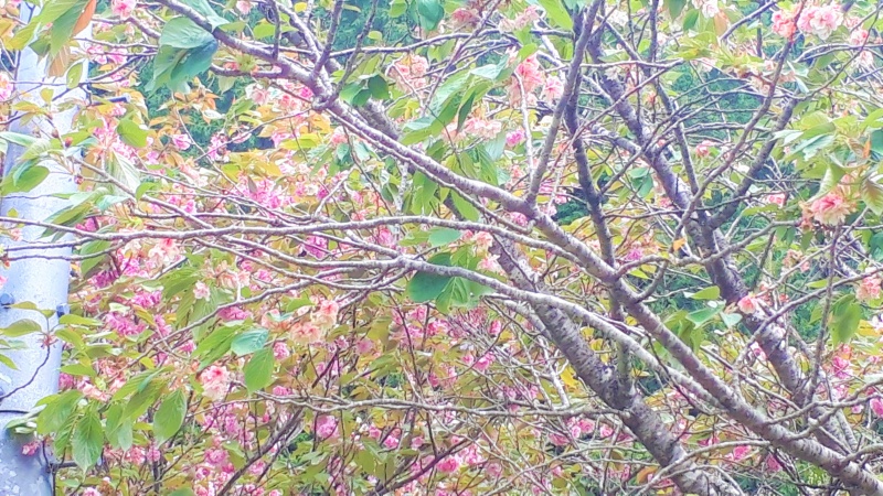 上の写真は5月に入ってから撮影した白草の黄色い桜です。この時、花びらはもうすっかりピンク色に変化していました。