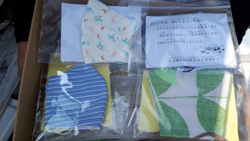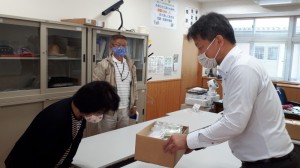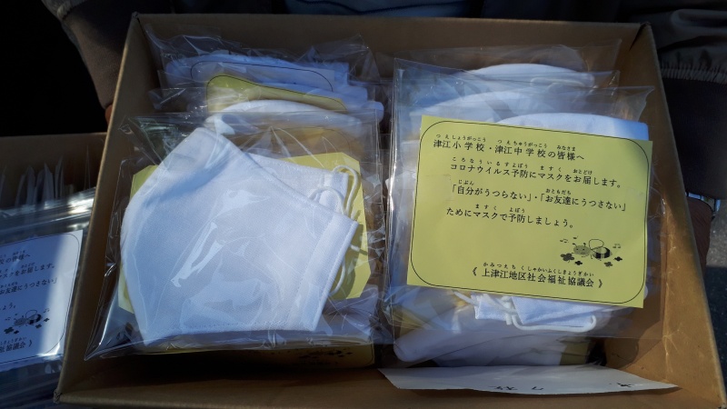 上津江社協が小中学校へマスクを寄贈【R2/5/27】