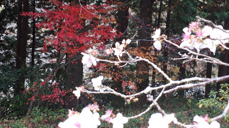 何と、春と秋に花を咲かせるという桜。「四季桜」です!!