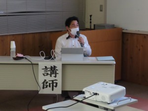 講師は山本政信先生。北友田3丁目地区集会所に勤務しており、大分県人権問題研修講師として県内各所で講演・啓発活動を行っておられます。