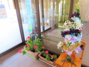 子ども達が飾り付けたクリスマスツリーを、上津江振興局ロビーに飾っています。