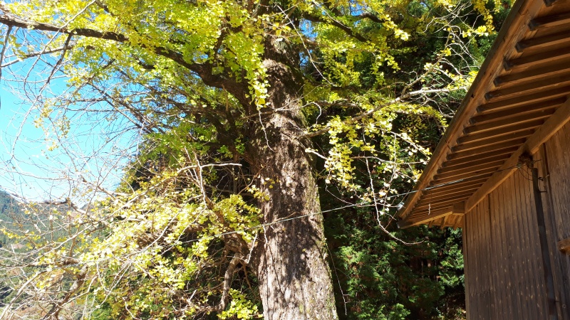 朝から準備が行われていました。境内には大きなイチョウの木があって、「どれくらいの太さがあるんだろう?」という話に。