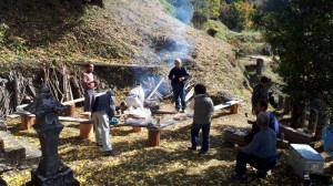 さて、少しずつ地区の人が集まって来て、日篭が始まりました。この日は暖かく天気も良かったので、外にいても過ごしやすかったですね。