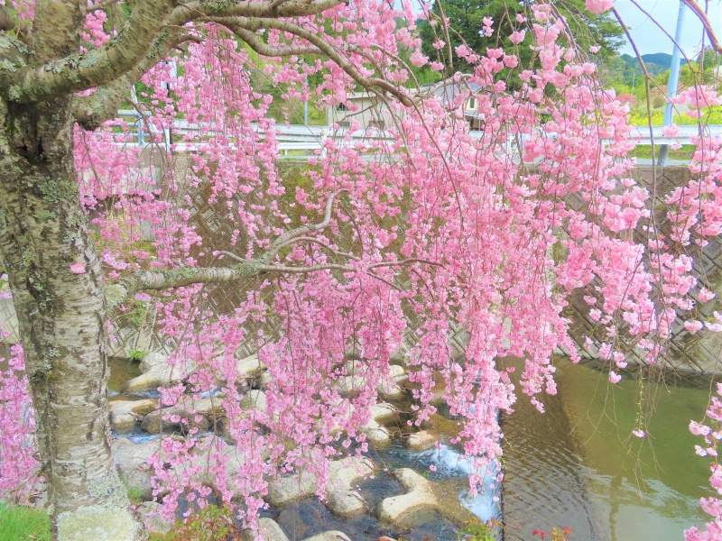 白草・麦野川の橋の横に一際目につく鮮やかな枝垂れ桜がありました。見事ですね!