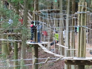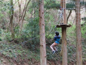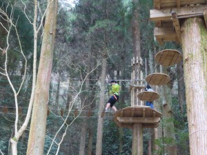 木々の間、かなりの高さにワイヤーやロープで造られたコースを進んでいきます。