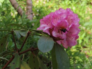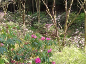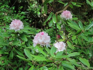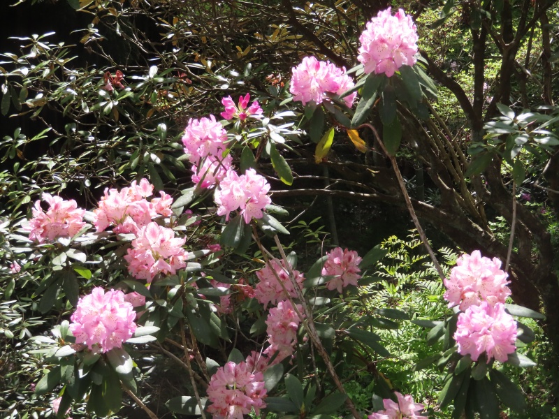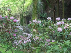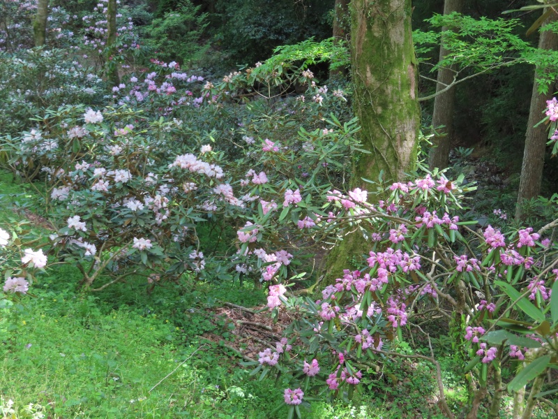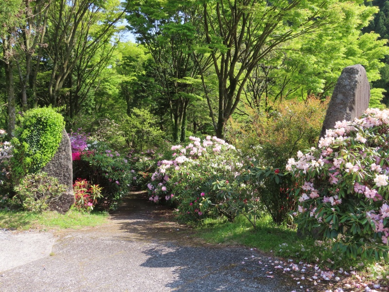 程野地区にある上津江シャクナゲ園は、2万本のシャクナゲと3千本のツツジが植えられているそうです。 大きな2つの岩が入口になっていて、その間を入っていくと、道の両脇から花がせり出していて、シャクナゲロードという感じ(^^♪ 下を流れる川までの斜面に、たくさんのシャクナゲが植えられています!!