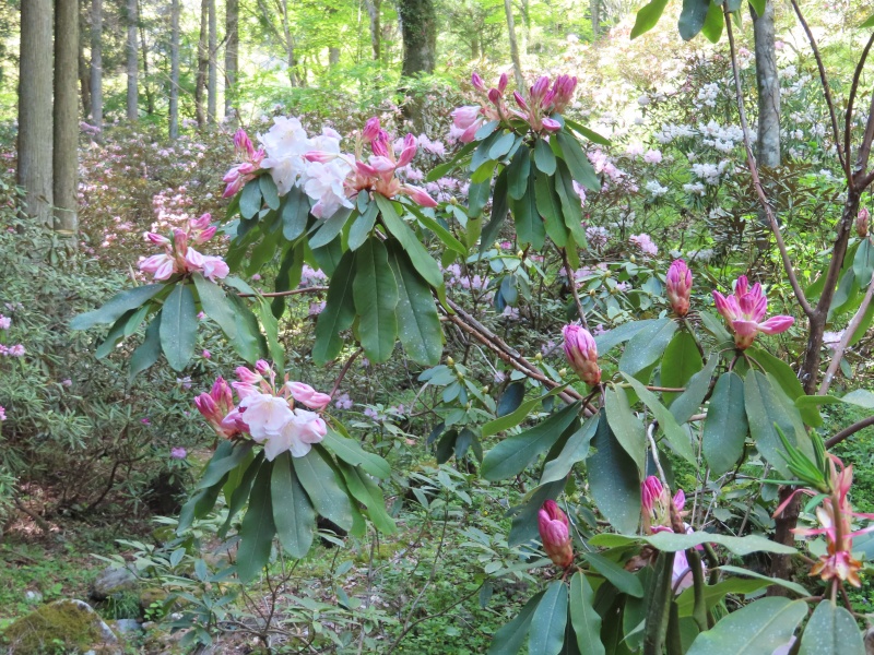 今年の開花は全体的に早かったようで、もう終わっているものありますが、たくさんの種類の西洋シャクナゲもあり、これから見頃を迎えるものもあるようです。